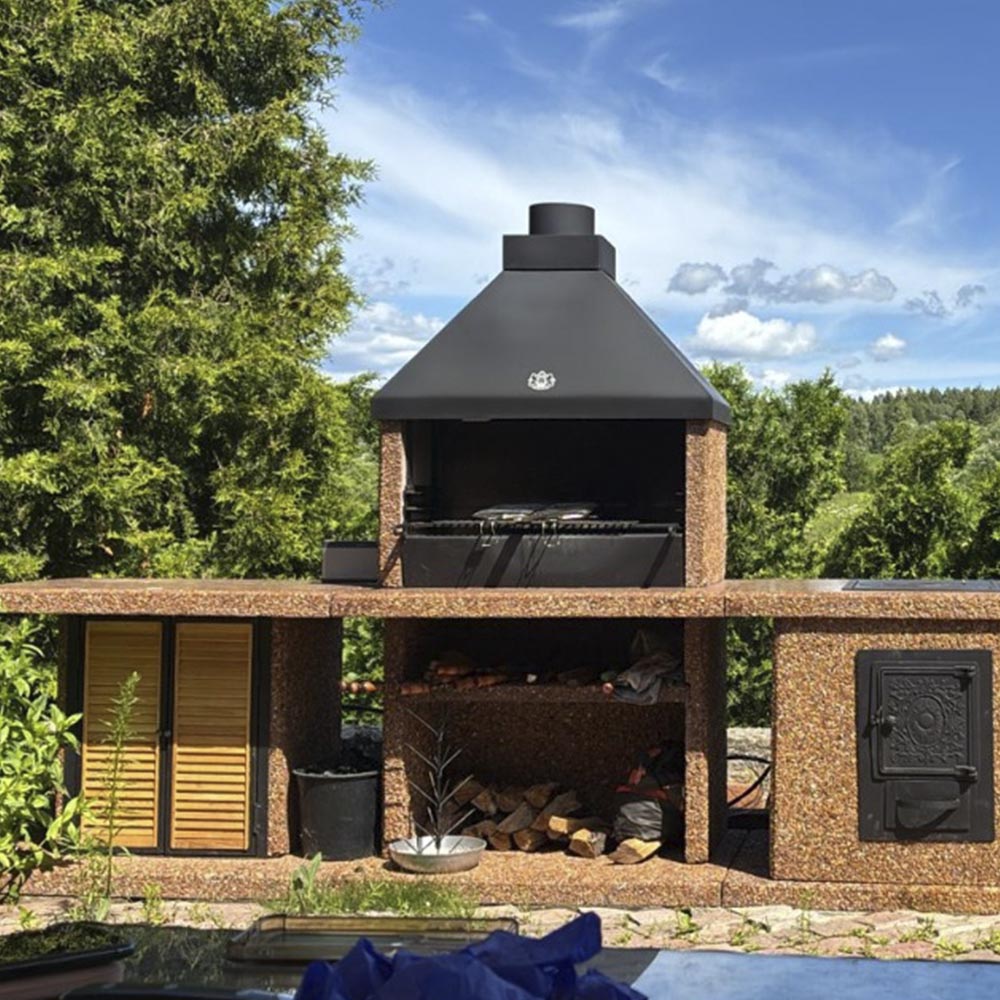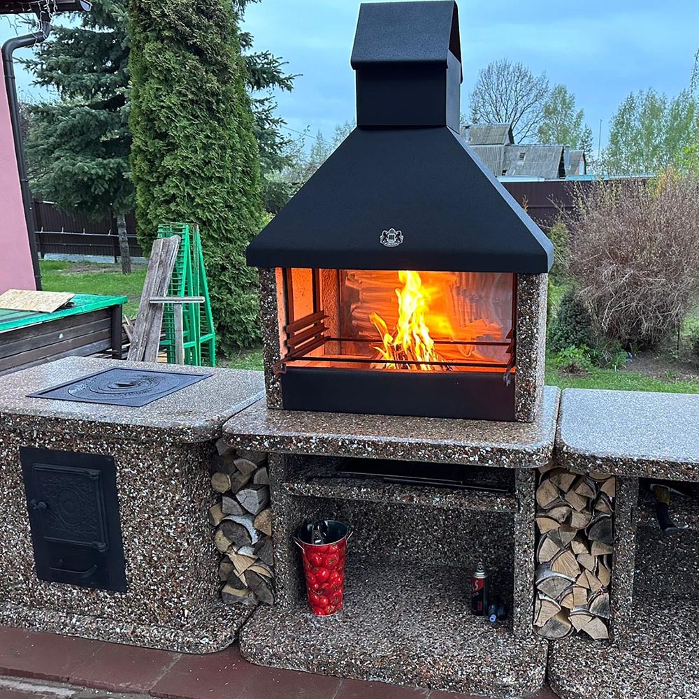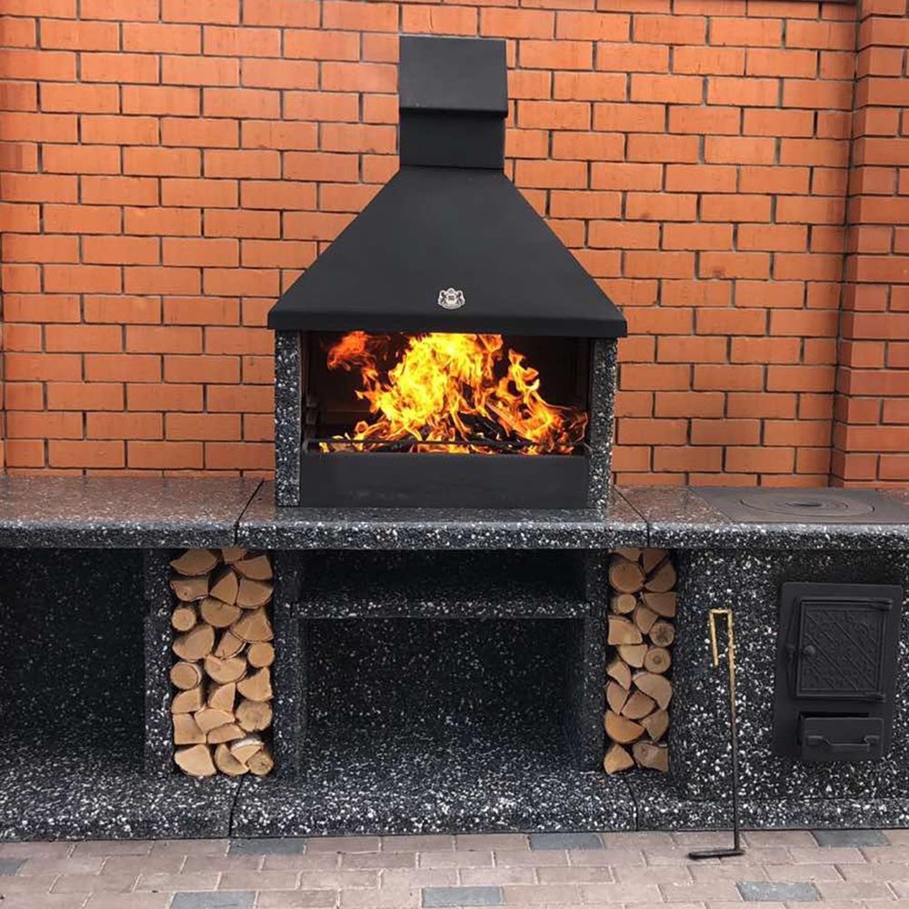 Топка барбекю печей спокойно выдерживает жар от огня, углей, при этом сохраняя его внутри, для спокойствия наших клиентов мы кладем в топку шамотный кирпич