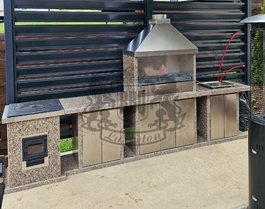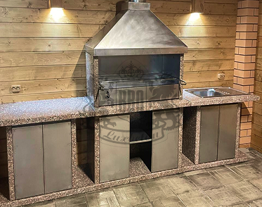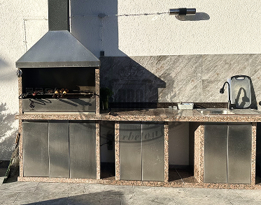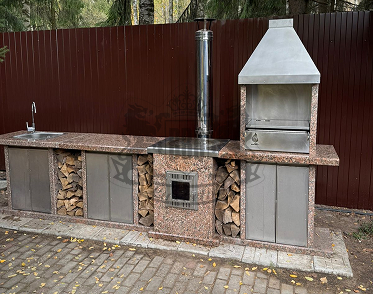 Разделочный стол из цельного гранита и нержавеющей стали AISI 304 станет надежным и стильным решением для вашей барбекю зоны